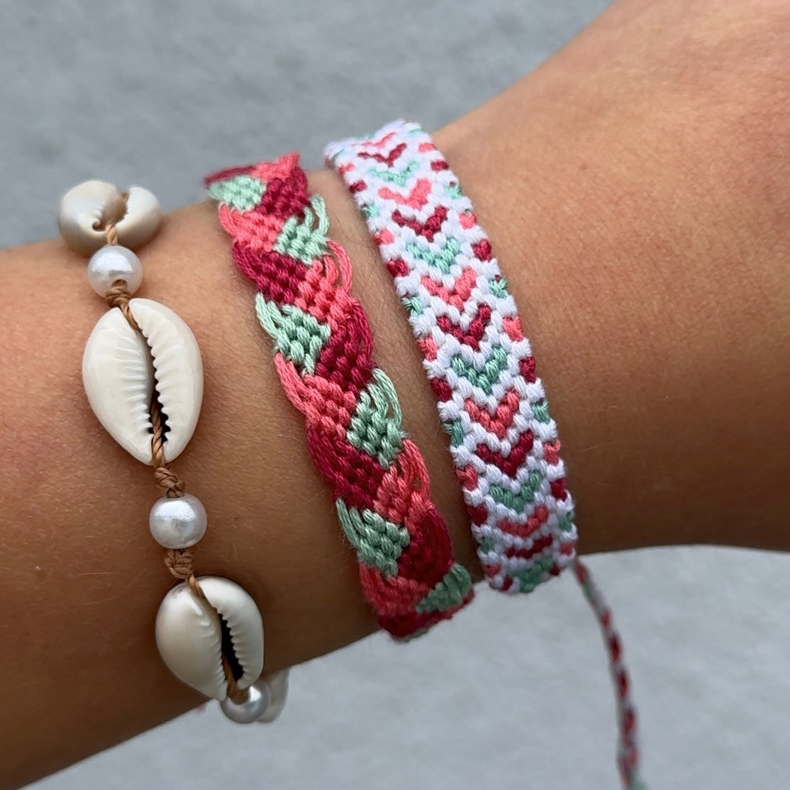Tie on friendship bracelet made with 100% cotton embroidery thread.