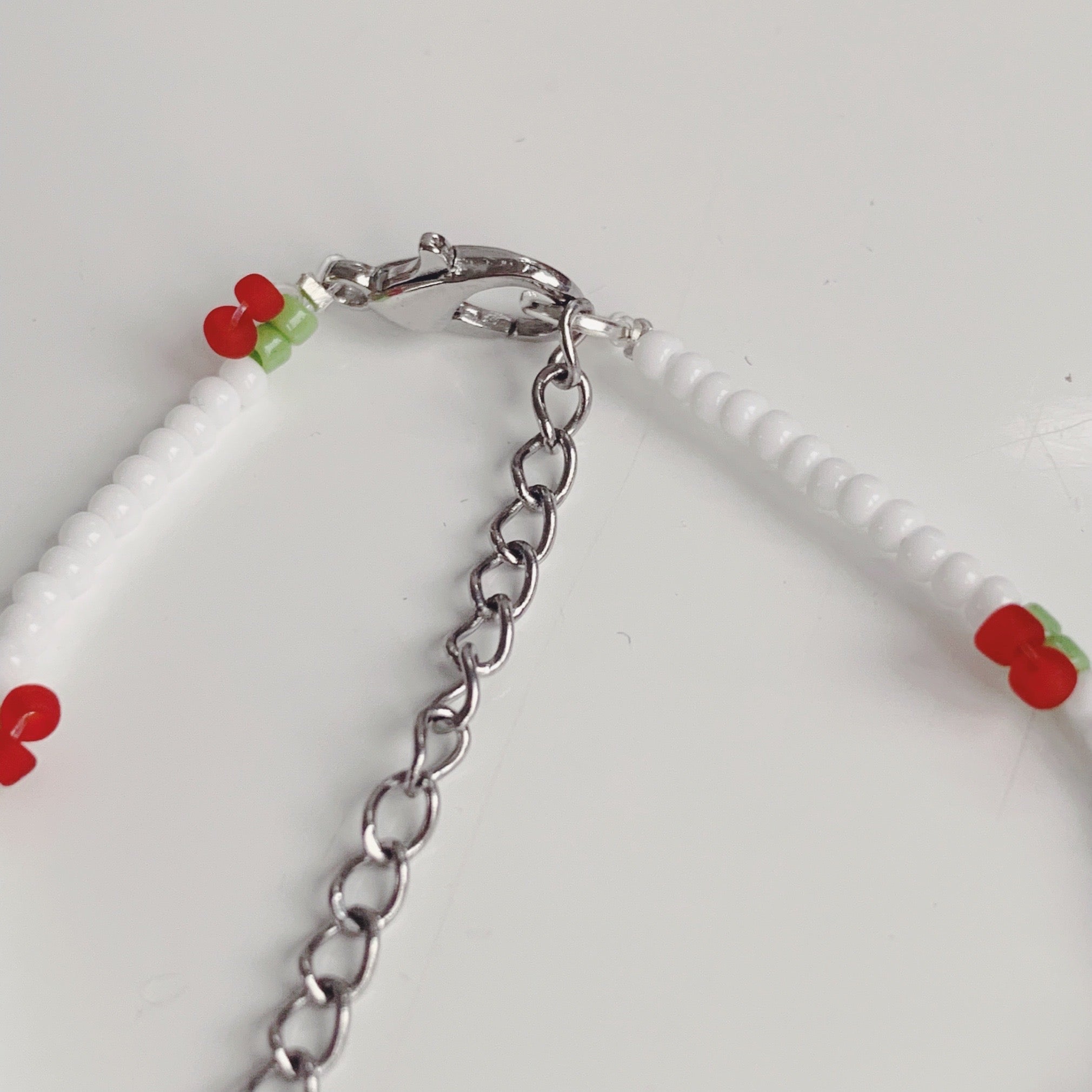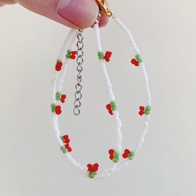 Super sweet cherry bracelet made using high quality glass beads.