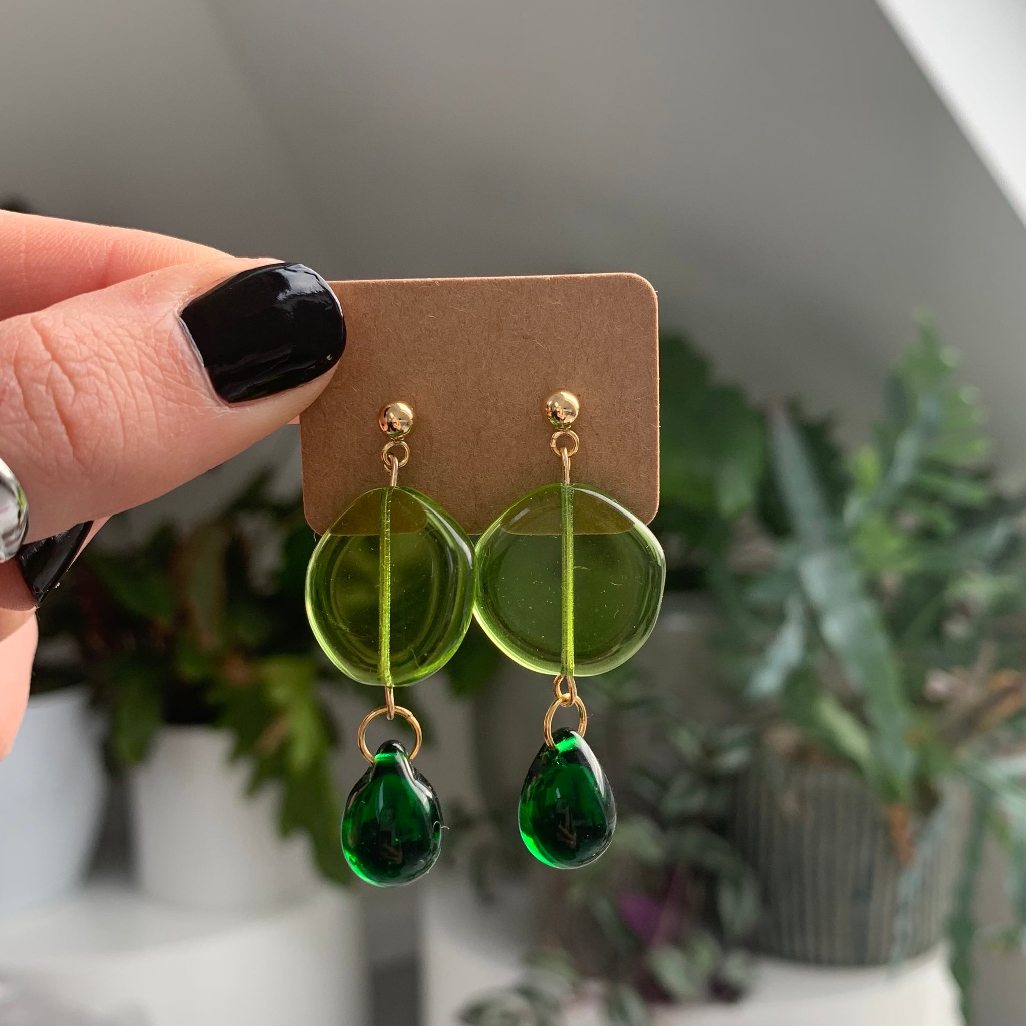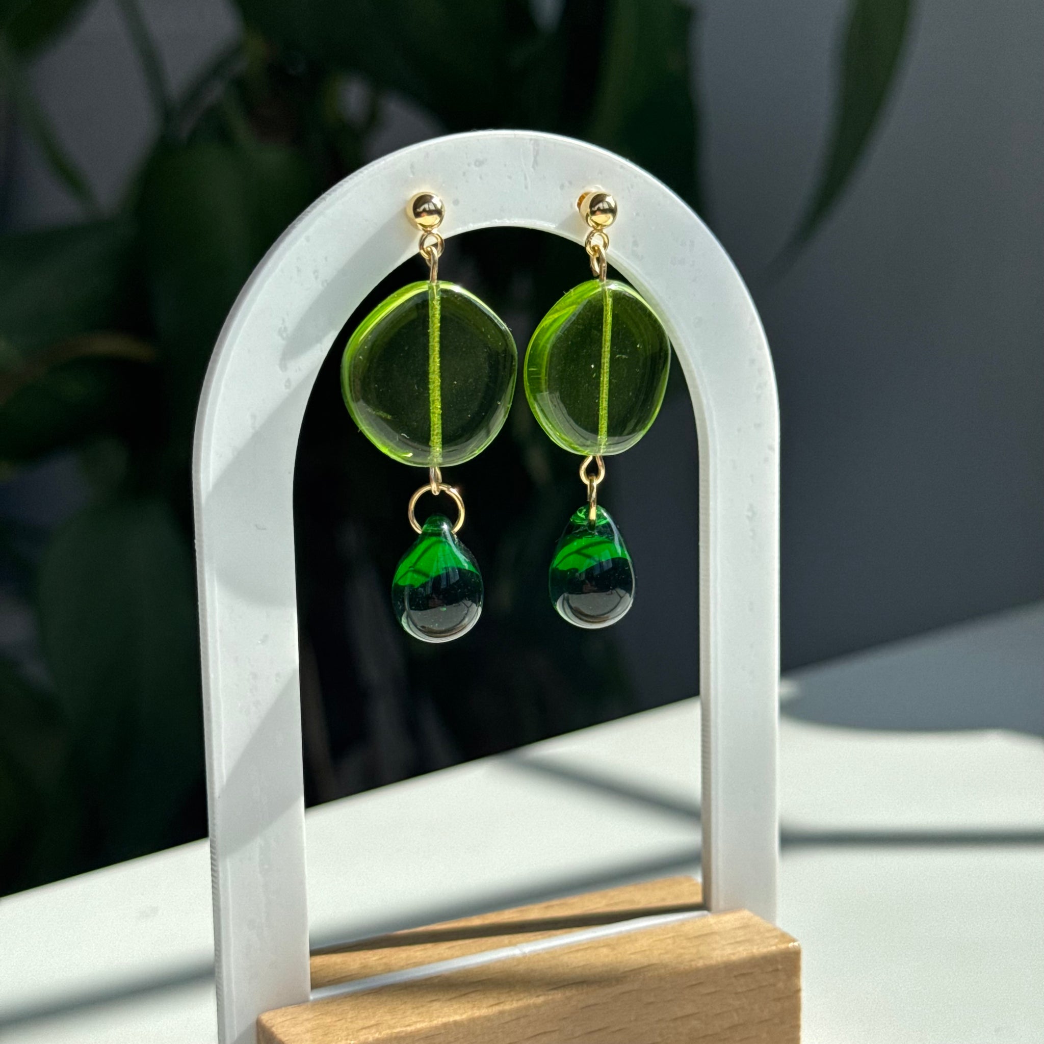 Stunning Czech fired glass beads on gold plated 304 stainless steel studs. These are named after my gorgeous friend Lucy who loves green! She has paired these with a beaut outfit (see last photo).
