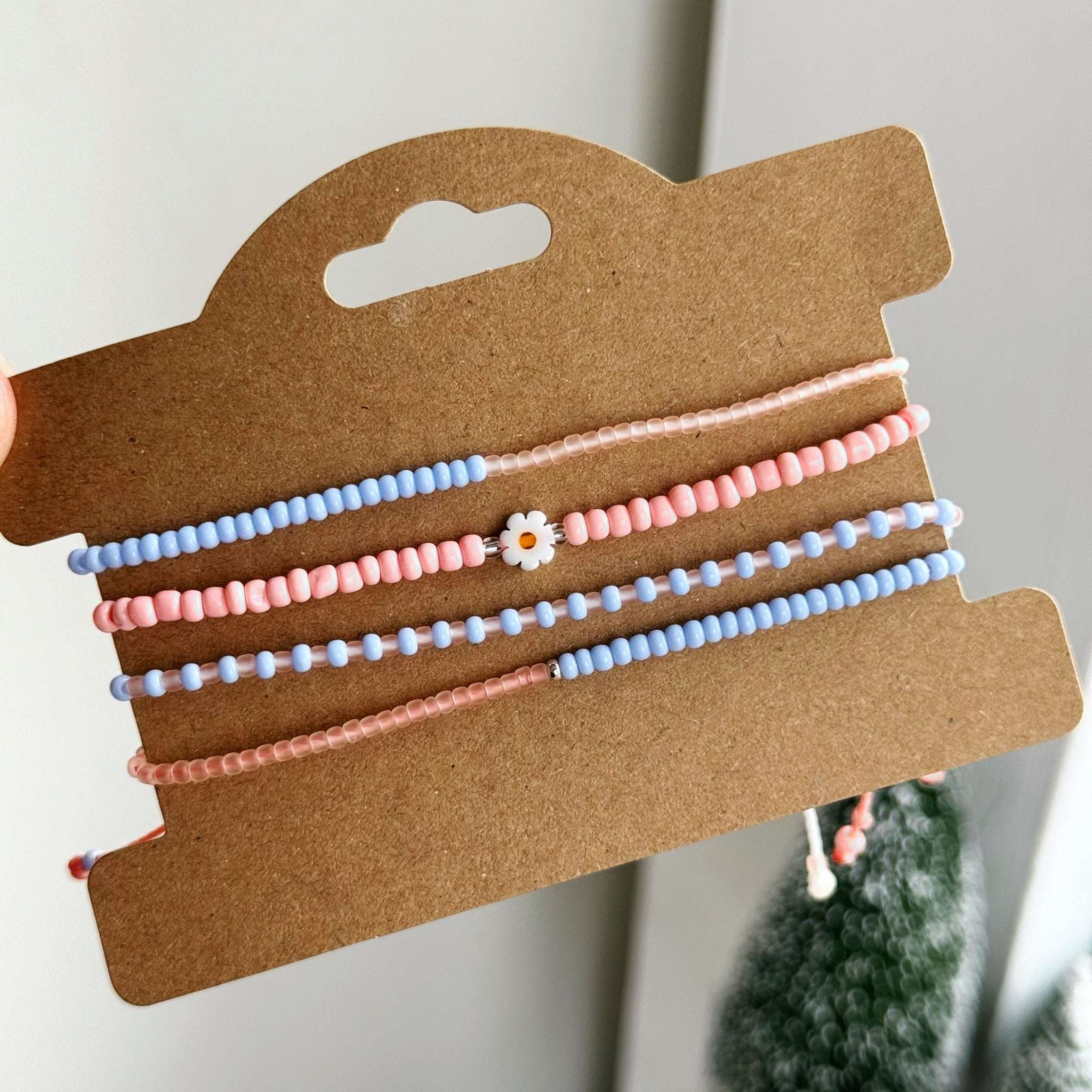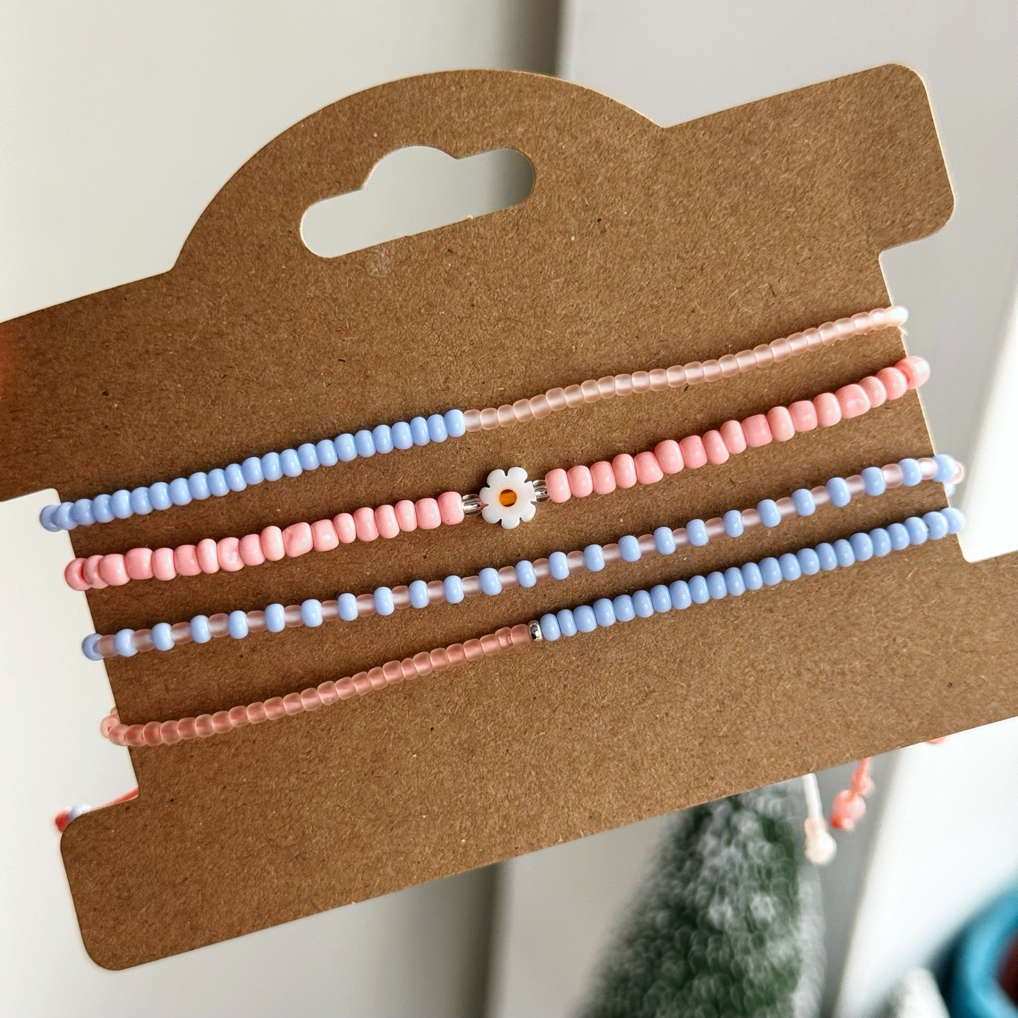 Adjustable bracelets, measuring approx. 16cm with an extra 7cm extender on each side, secured with a sliding knot to make adjusting the size easy!