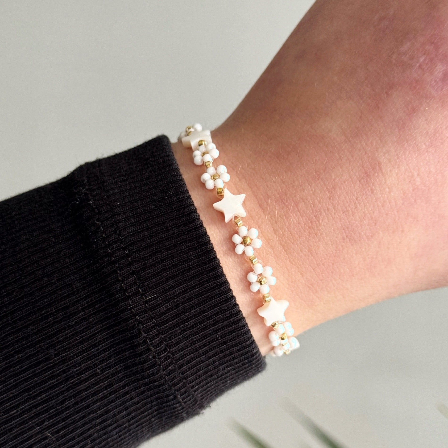 Our bracelets are made using high quality glass beads, finished with a gold plated/stainless steel lobster clasp, jump ring and extender chain.