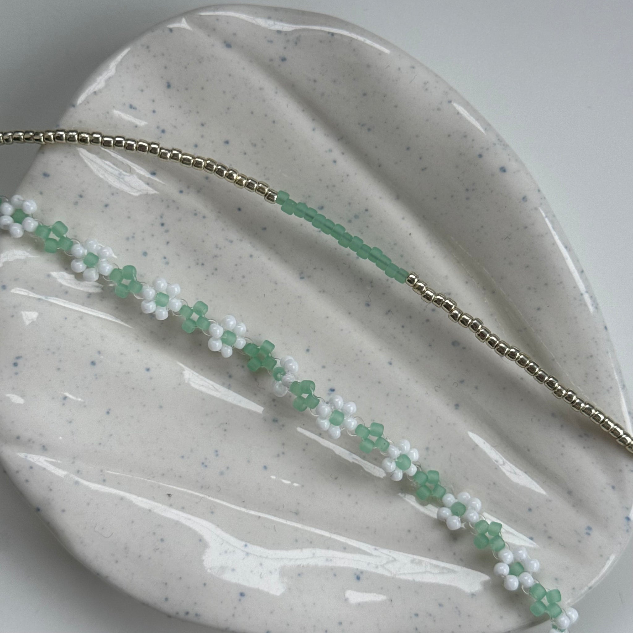 Frosted mint and gold set of 2 bracelets