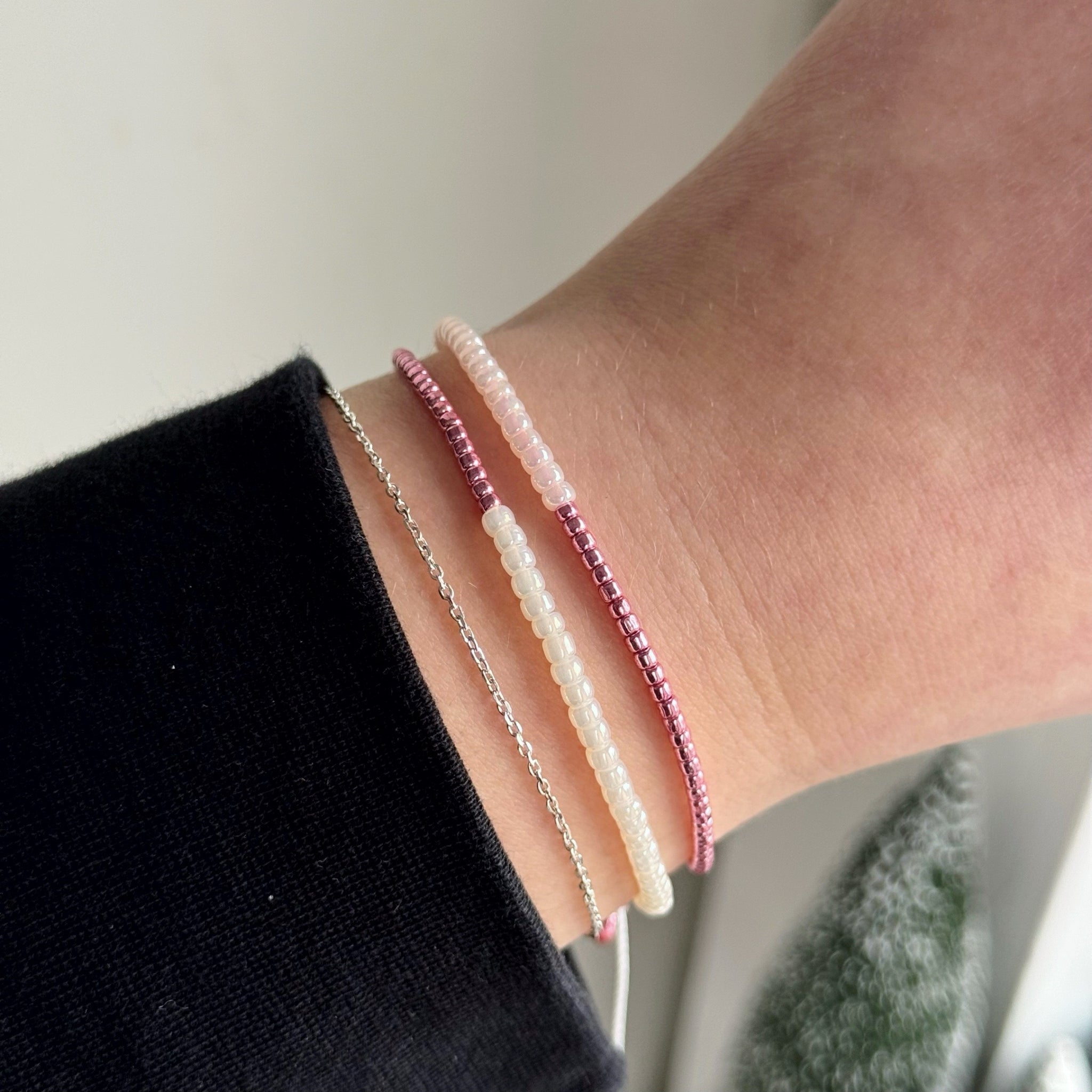Adjustable bracelets, measuring approx. 15cm with an extra 6cm extender on each side, secured with a sliding knot to make adjusting the size easy!
