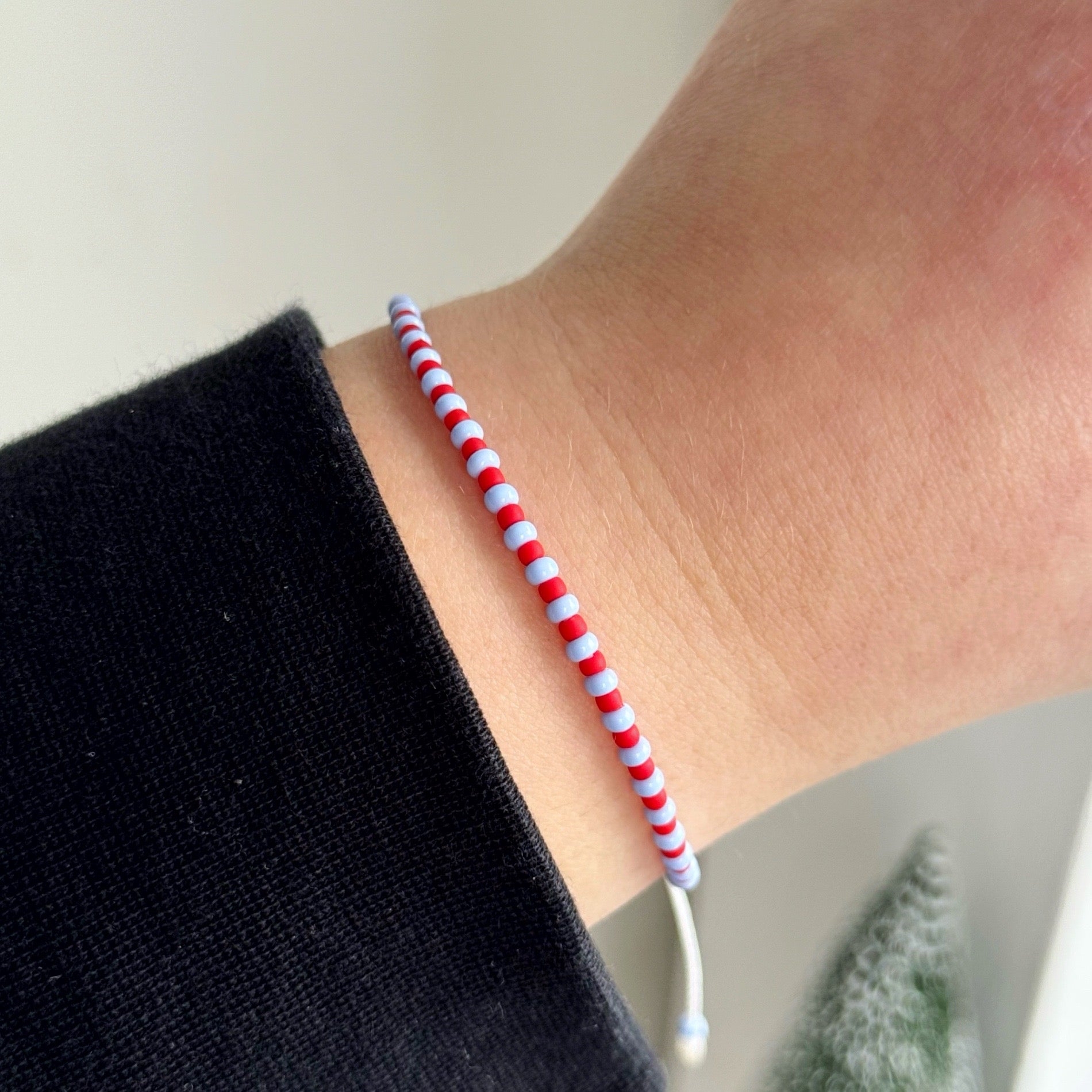 Adjustable bracelets, measuring approx. 16cm with an extra 7cm extender on each side, secured with a sliding knot to make adjusting the size easy!