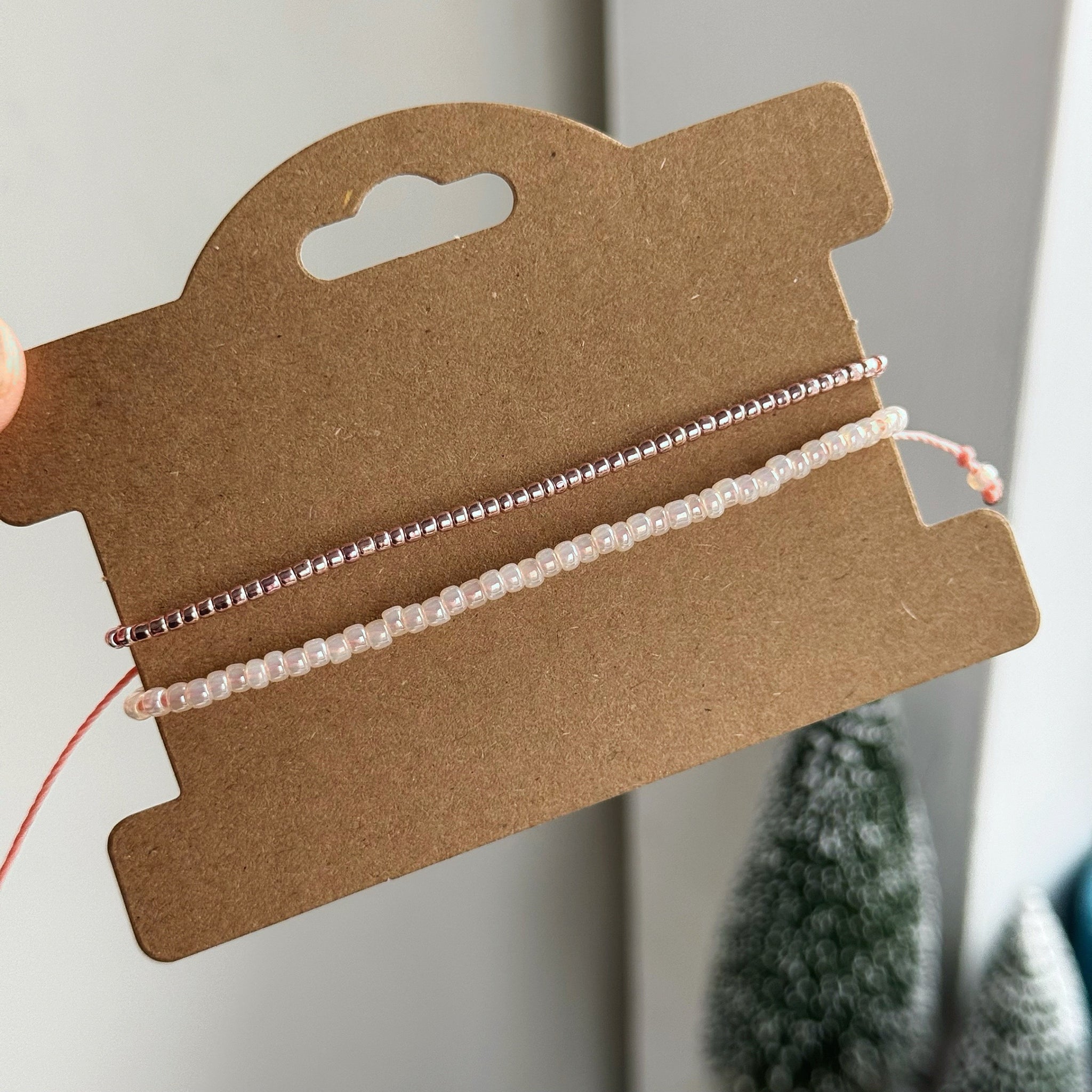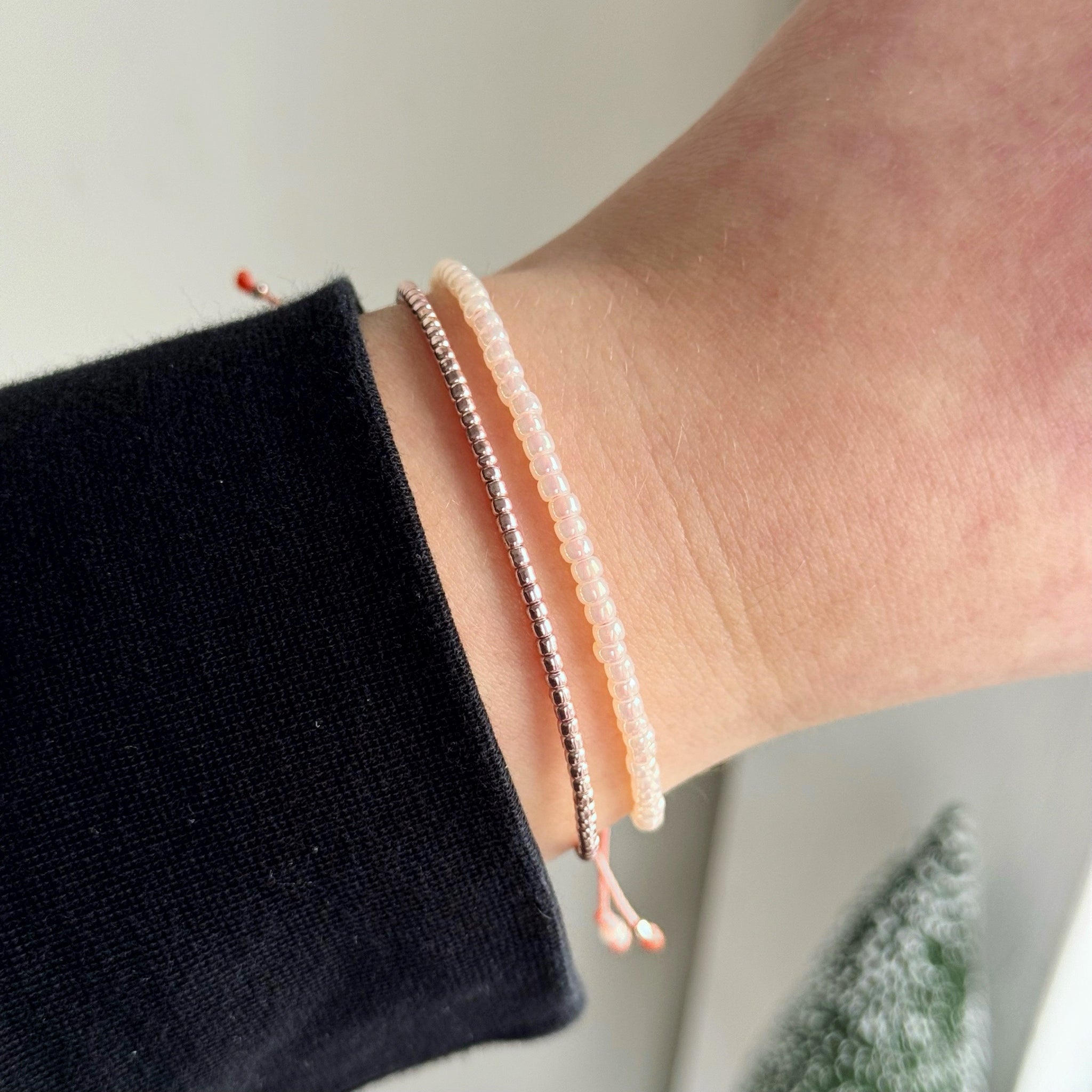 Adjustable bracelets, measuring approx. 15cm with an extra 6cm extender on each side, secured with a sliding knot to make adjusting the size easy!