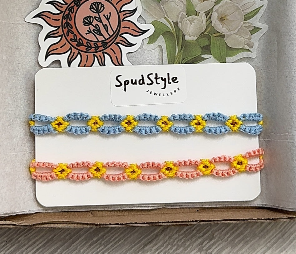Made using cotton embroidery thread, these super pretty flower bracelets are the absolute best!